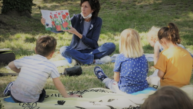 Antje: Okay, yes, thank you very much, Giulia, and thank you for the invitation to be here with you. So, regarding the emotions that this picture evokes in me, there are 2 or 3 types of emotions. First of all, due to the current situation of the pandemic and being in a lockdown for more than 1 and a half months, this picture creates also a belonging more to the outside than it is unfortunately currently possible. So, belonging to be in nature and be together in nature and not just in our small family circle but with more people. The other emotion also creates something like touching the ground sitting on the floor, connecting with the earth, and just being proud of it. And at the same time, there is also the kind of hope. Due to the current situation, we might be pushed to use more outer spaces for learning, which is important for our children. And to learn in and with nature. So, maybe there is also this opportunity to explore new approaches and new places for our learning. That’s so far from my side, thank you.